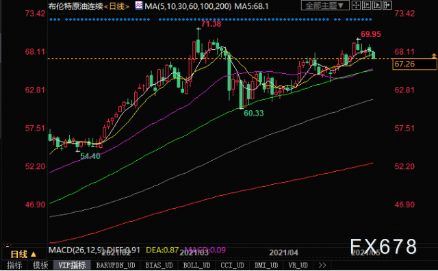 北京时间5月11日21:25,布伦特原油期货价格报67.22美元/桶。