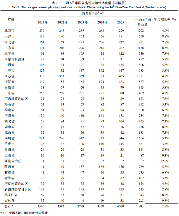 2“十四五”中国天然气消费总量及结构预测